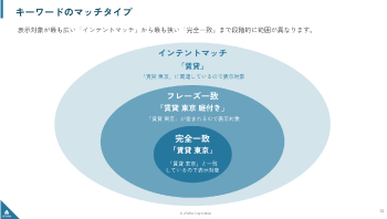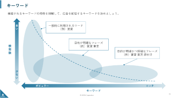 Google 検索広告について、アカウントの設計方法やキーワードの選定方法など、広告運用に役立つ実践的な内容を解説した資料です。